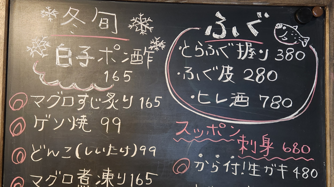 こだわり 単品メニュー ランチメニュー アルコール 冬の味覚 季節メニュー X コピー 2025.02.25 旬真っ只中!白子ポン酢やとらふぐ、特大生牡蠣など、冬ならではの食材満載♪また、店内調理だからこそ提供できる【スッポン刺身】は是非一度お試しください☺︎